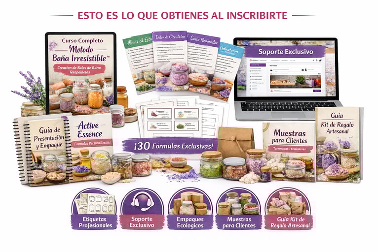 Transforma ingredientes naturales en una línea irresistible de sales de baño terapéuticas que fidelizan clientes y posicionan tu marca como un negocio con propósito.